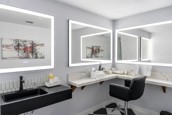 Designed for guests, hosts, and performers to prep before going on camera. This room includes professional lighting, mirrors, and a clean setup for makeup, wardrobe changes, or touch-ups between takes. A calm space that helps everyone walk on set confident and ready to deliver.