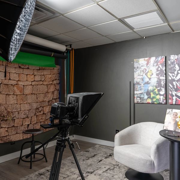 This multi-purpose studio offers changeable backgrounds — green screen, brick, or neutral tones — ideal for book releases, promo clips, photoshoots, and announcement videos. Whether you’re recording a quick message or a full campaign, Studio D gives you options and a professional look that fits any vision.