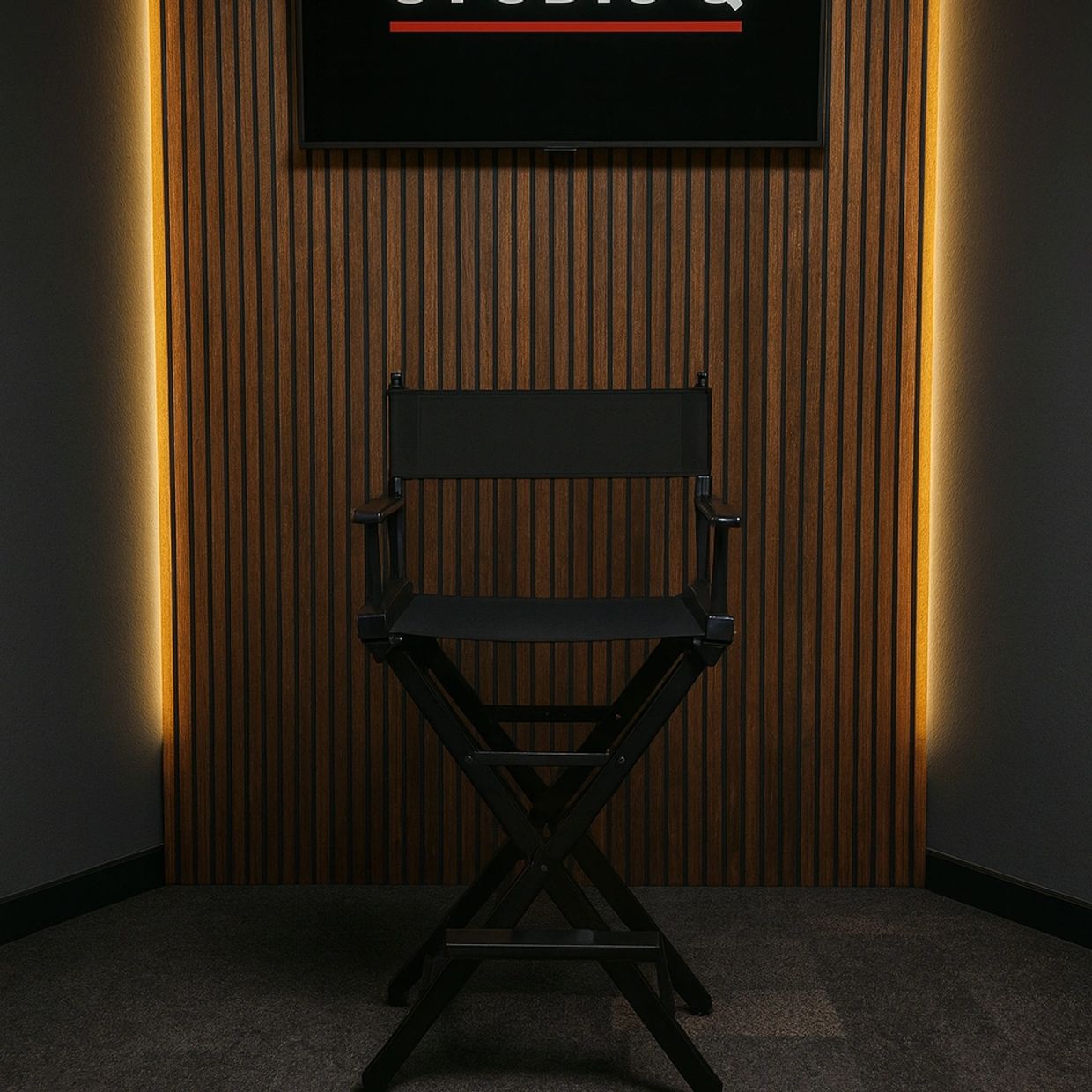 Studio Q features warm wood tones, controlled lighting, and a minimalist setup that draws all attention to the subject. It’s the perfect environment for podcasts, testimonials, or short-form video content where authenticity and emotion matter most.
